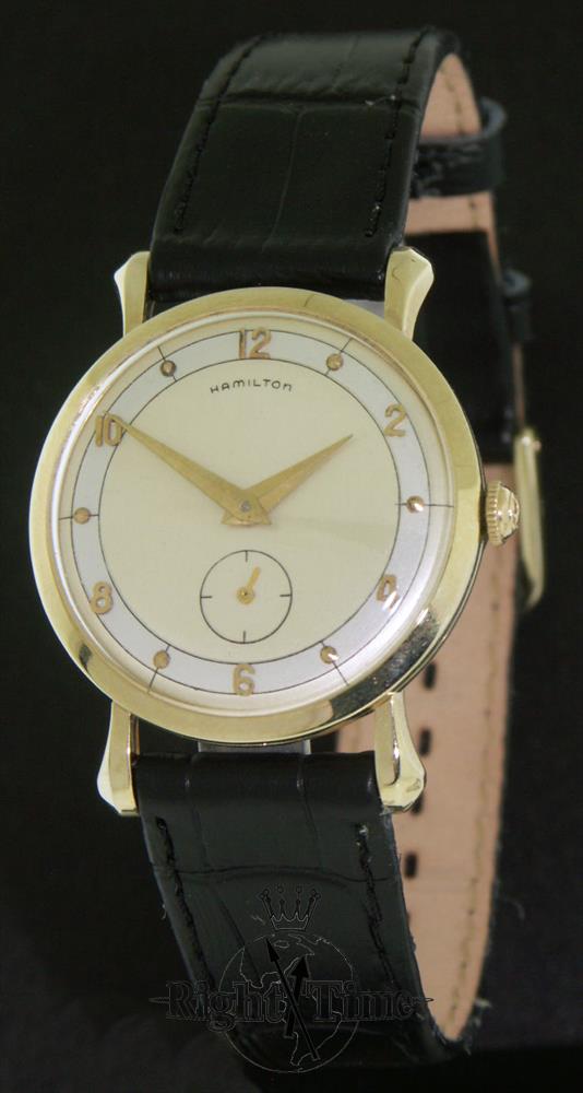 Hamilton 10kt solid yellow gold case, driven by 22 jewels Caliber 770 manual wind movement with small second hand. .