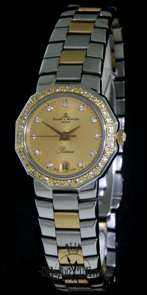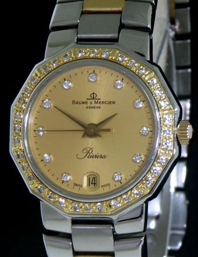 Ladies dress sport Swiss made Baume et Mercier "Rivera" quartz model in stainless steel and 18kt gold execution, with diamond set bezel and dial