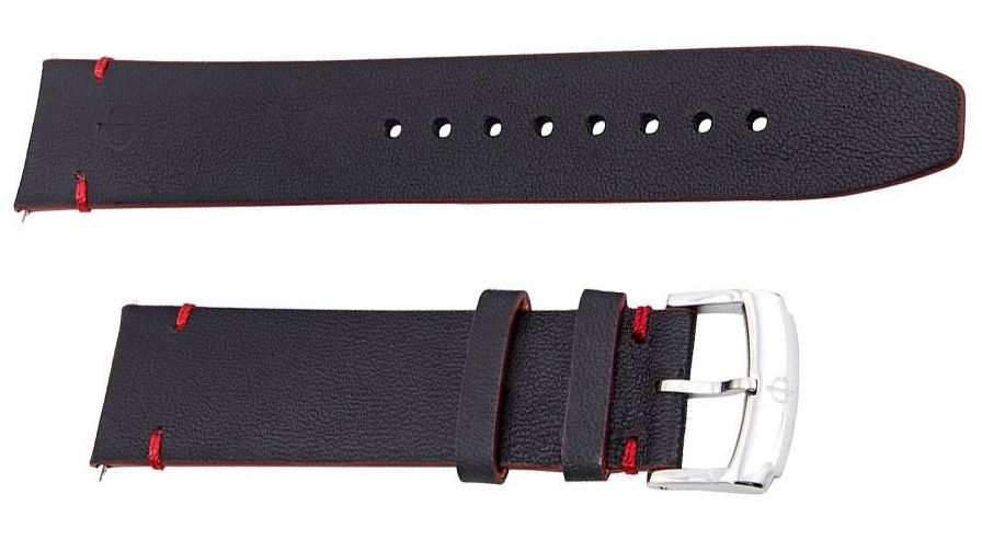 Black rhodium-plated. Luminous filled. Red chronograph hands.