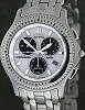 Citizen Eco-drive sport style chronograph watch. Polished and satin finished stainless steel case and watch bracelet, white dial with black sub-dials and luminous hands. Water resistant to 100m. Watch Features: Chronograph, 2 Alarms, Date, 24 hours indicator.