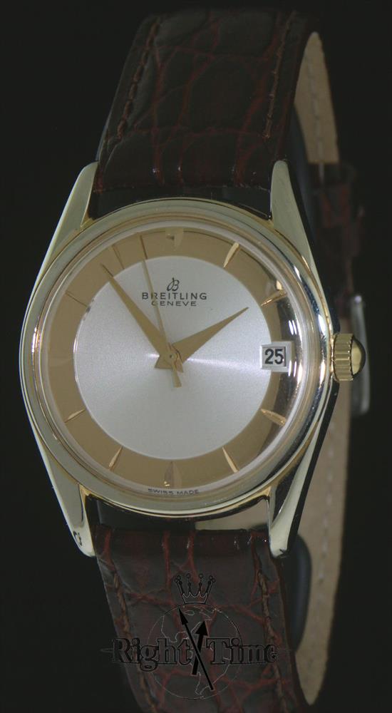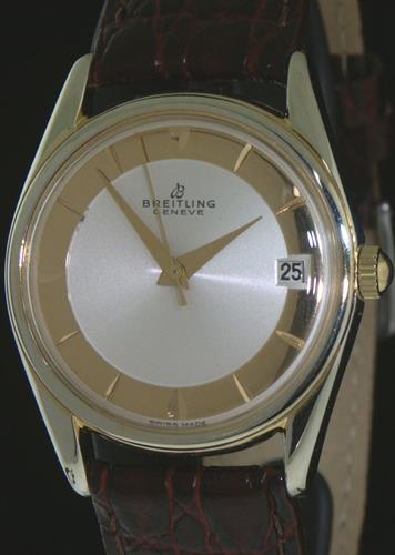 Breitling dress model steel gold plated case with unique gold tone and cream color dial, powered by famous Swiss movement maker Venus, 24 jewels caliber 227 or Breitling 220