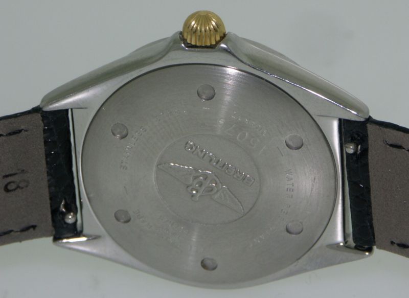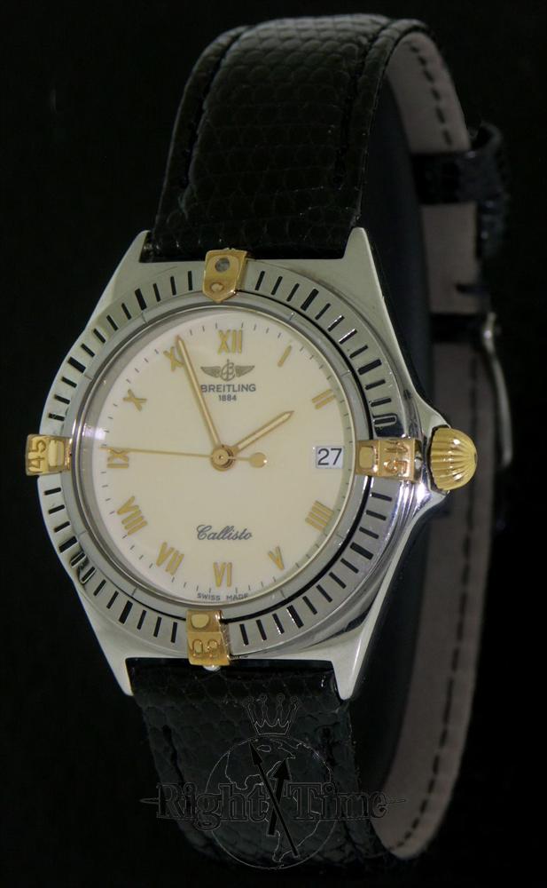 Mid-size Breitling "Callisto" dress sport model with ivory color dial, steel case and steel rotating bezel with gold plated accents