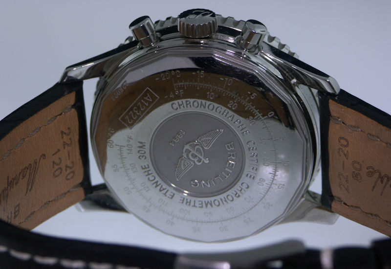 Swiss made Breitling Navitimer "Cosmonaut" powered by manual wind Lemania Swiss caliber 1873 24 hour black dial with luminous numbers and hands on black factory leather strap, polished steel case E6B rotating slide rule bezel