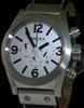 Brera Orologi Eterno 45 Collection. Quartz chronograph movement with 24-hour hand. White dial with Arabic markers and date calendar. Brushed stainless steel 45mm case with oversized crown. Black leather watch band with strap guard.