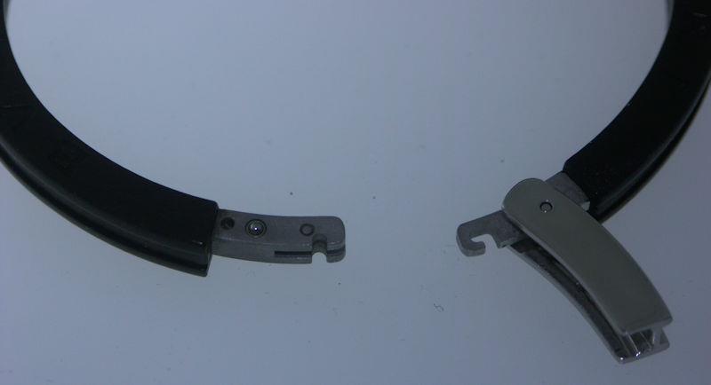The band is 6mm wide black plastic 2 piece bracelet.