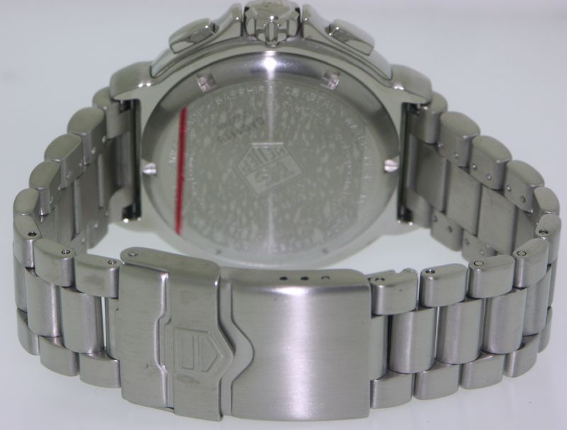 Tag Heuer Formula 1 Swiss made quartz sport chronograph CAC111B.BA0850 with black Indy 500 dial and contrasting silver color sub-dials in steel case with stainless steel bracelet and Indy500 tachymeter bezel