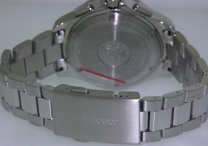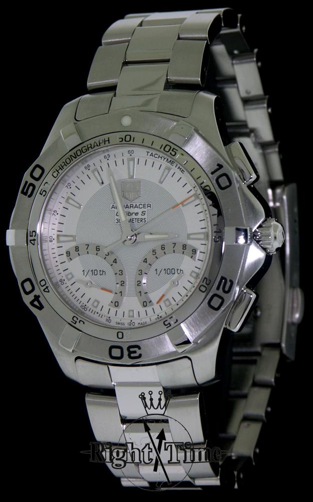 Sport 300m water resistant Tag Heuer "Aquaracer" quartz chronograph with pearl white dial, satin finish stainless steel band and case, powered by Swiss made 1/100sec perpetual calendar chronograph Tag Heuer Calibre S