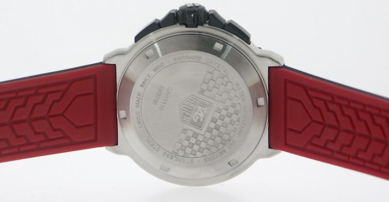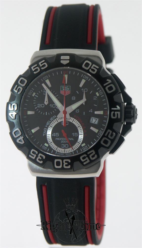 Swiss made Tag Heuer divers "Formula 1" quartz chronograph CAH1110.BA0850 model with black dial, applied steel markers, black rotating bezel, 200m water resistant, steel case and rubber strap