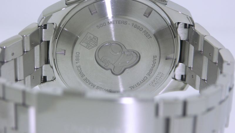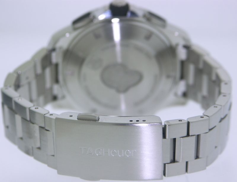 Tag Heuer "Aquaracer" automatic chronograph CAK2110.BA0833 with ceramic bezel, all steel 500m water resistant case and bracelet, powered by Tag Heuer Cal.16 based on 25 jewels Valjoux 7750 movement, pin striped black dial with steel applied luminous markers markers and hands, countersunk chronograph sub-dials