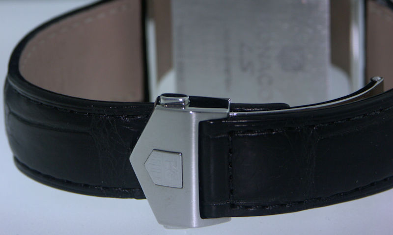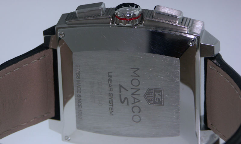 Largest 2013 re-edition of Tag Heuer "Monaco", CAL2110.FC6257 Linear model, originally inspired by the Monaco Grand Prix race, and than popularized by Steve McQueen in 1971 movie "LeMans". Stainless steel case with faceted sapphire crystal, powered inside by Heuer Calibre 12 automatic chronograph movement