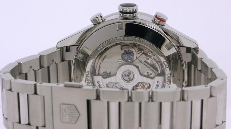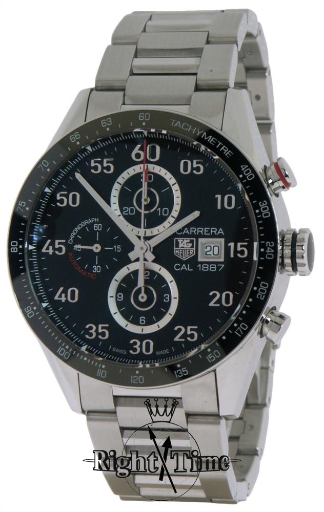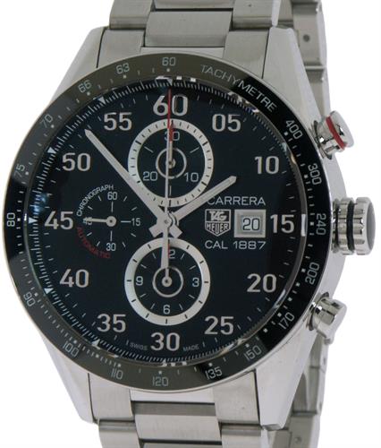 Tag Heuer Carrera model CAR2A11.BA0799. Swiss made Tag Heuer Caliber 1887 automatic chronograph movement. Solid stainless steel case and bracelet. Black dial with polished hands and Arabic numerals. Fixed ceramic tachymetre bezel. Sapphire crystal.
