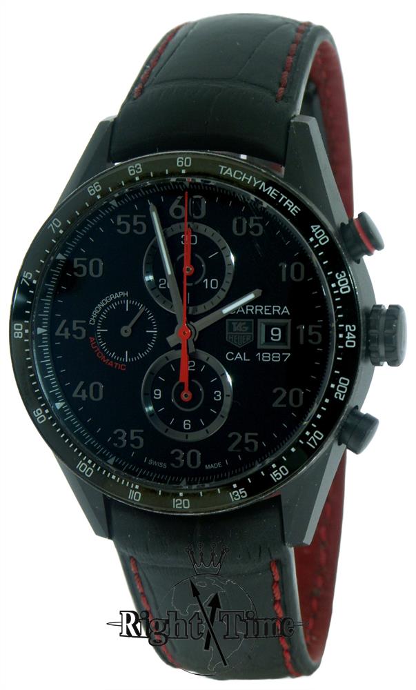 Tag Heuer Carrera model CAR2A80.FC6237. Swiss made Tag Heuer Caliber 1887 automatic chronograph movement. Black PVD coated titanium case. Black dial with polished hands and Arabic numerals. Fixed bezel with ceramic tachymetre insert. Sapphire crystal.