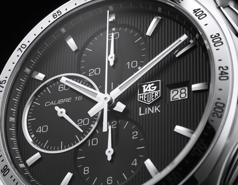 Tag Heuer Link Automatic Chronograph "Calibre 16" model CAT2010.BA0952. Powered by Tag Heuer Cal.16 based on Valjoux 7750. Solid Stainless Steel Case and band. Classic black dial with black sub-dials and applied markers. 100m water resistant.