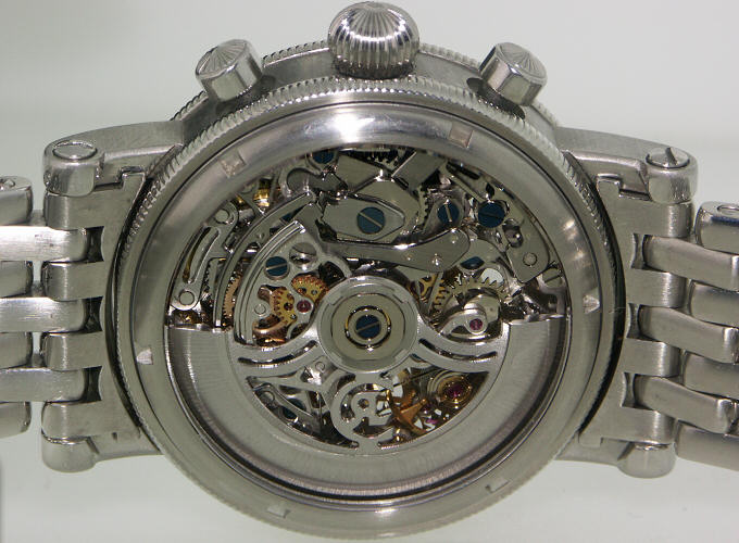 Chronoswiss Opus Skeleton Chronograph. "Watch of the Year" by the readers of Armbanduhren magazine in 1996. First prize in Japan in 1998. Fully skeletonized Automatic Chronograph with bracelet.