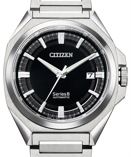 Citizen Series 8 model NB6010-81E. Citizen Calibre 0951 automatic movement. Solid stainless steel case and bracelet. Black dial with steel tone luminous hands and markers. Sapphire crystal. Water resistant to 100 meters.