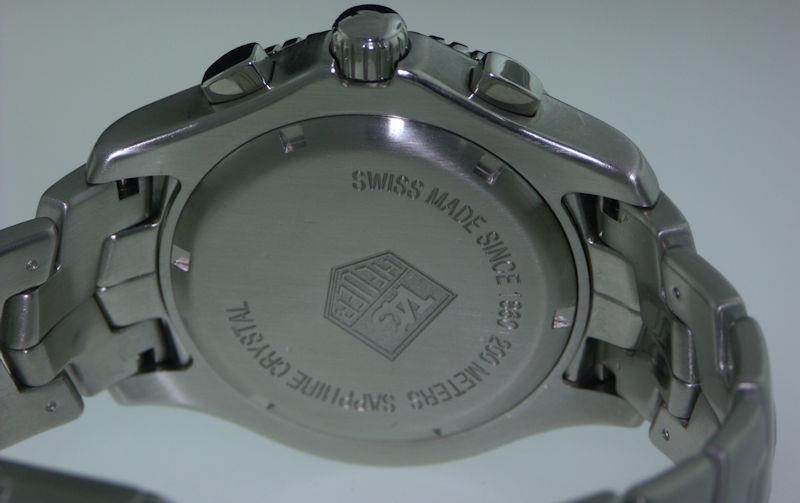 Men`s all satin finish stainless steel sport Tag Heuer "Link" quartz chronograph with black dial, powered by Swiss made 27 jewels ETA movement