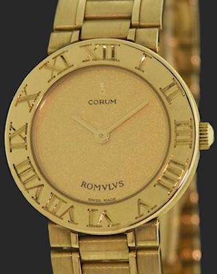 Ladies classic dressy 18kt (.750) solid yellow gold Swiss made quartz Corum "Romvlvs" model