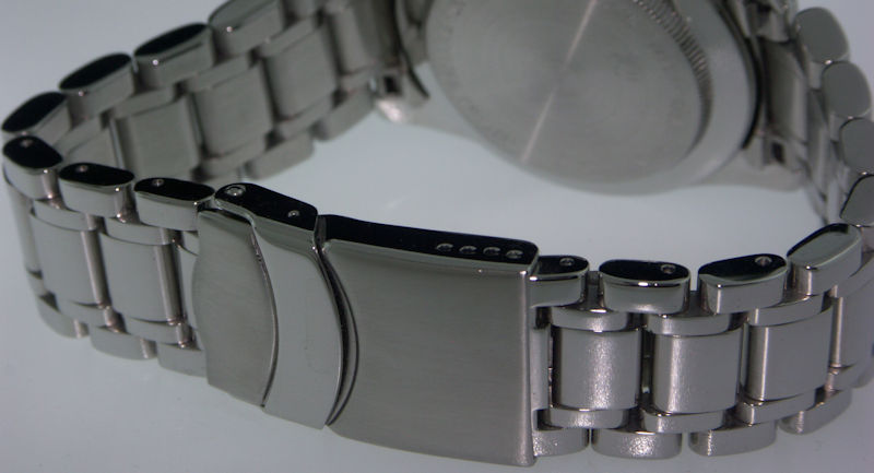 White enamel. Black color sub-dials. Applied polished steel tone markers. Luminous hour markers/dots.