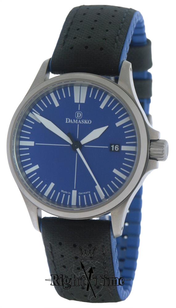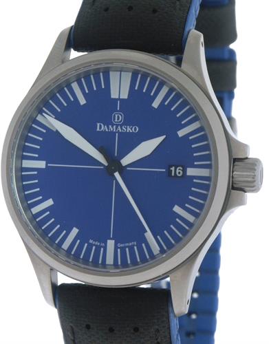 Damasko DS30 Ocean. Swiss ETA 2824-2 automatic movement. Sandblasted stainless steel case. Blue dial with luminous hands and markers. A/R coated sapphire crystal. Black Hirsch Roby rubber/textile strap with blue accent. Water resistant to 20bar.