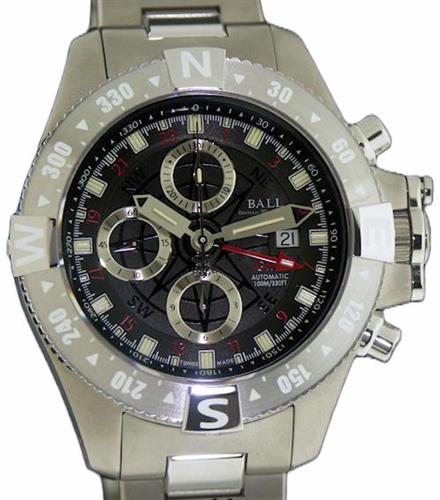 12 hr, 30 min, 60 sec registers chronograph. Second Time Zone indicator. Day/Date calendar, window display.