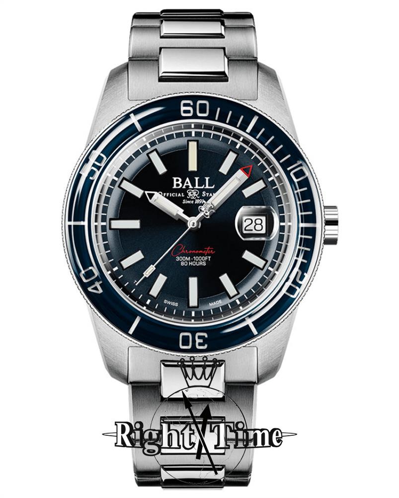 Ball Engineer M Skindiver III model DD3100A-S2C-BE. Solid stainless steel case and bracelet. Uni-directional rotating bezel with tritium filled tubes and a sapphire top. Blue dial with tritium filled hands and markers. Swiss made Ball caliber RRM7309-C automatic movement with COSC chronometer certification and 80 hour power reserve. Diver rated to 300 meters. Sapphire crystal.