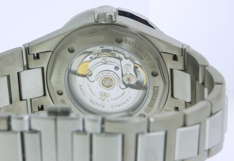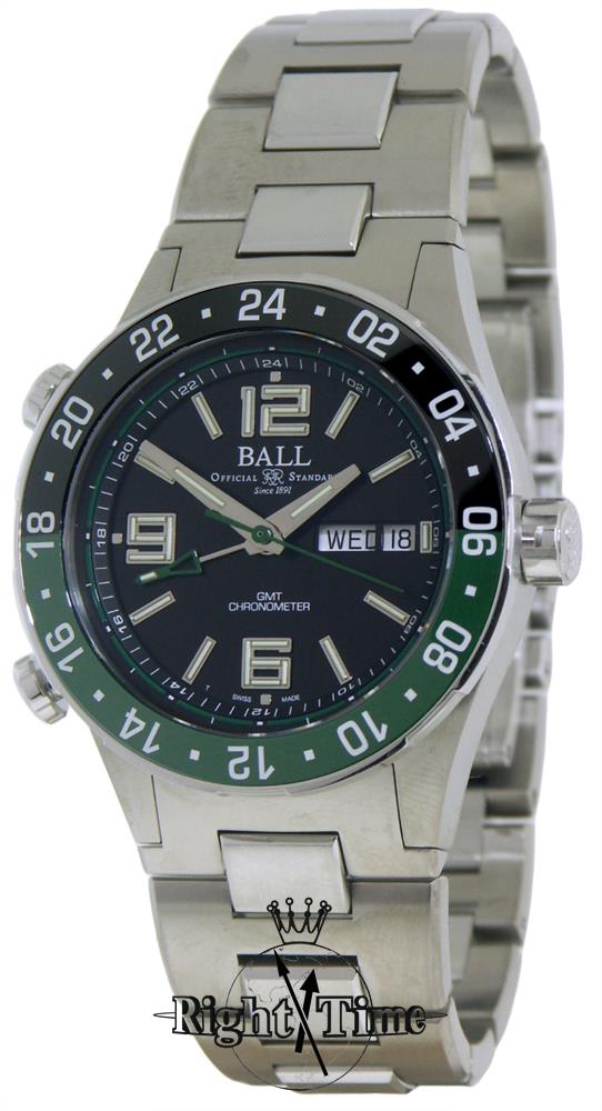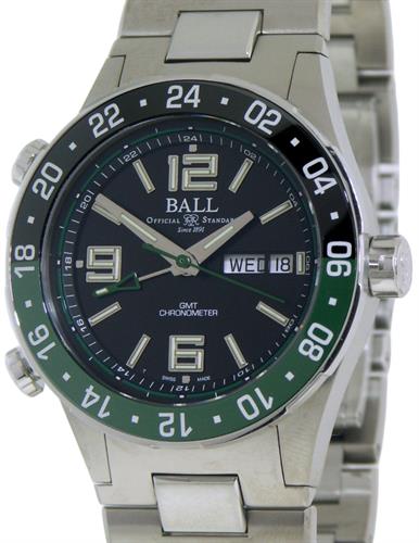 Ball Roadmaster Marine GMT 3 time zone series model DG3030B-S2C-BK. Limited edition of 1000 pieces Worldwide. Pure matte finished titanium case and bracelet. Black dial with tritium Arabic numerals and markers. Duo-directional ratcheted bezel with black/green ceramic insert 24 hour scale. Steel tone tritium filled hands with red GMT hand. Ball automatic caliber BALL RR1203-C movement with day/date and GMT function based on ETA2836-2. Certified COSC Chronometer. Sapphire crystal.