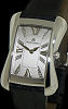 Maurice Lacroix Divina Ladies Watch. Curved stainless steel case with sapphire crystal. Swiss quartz movement. Silver color dial with diamond markers. Black leather band. Original box and papers.