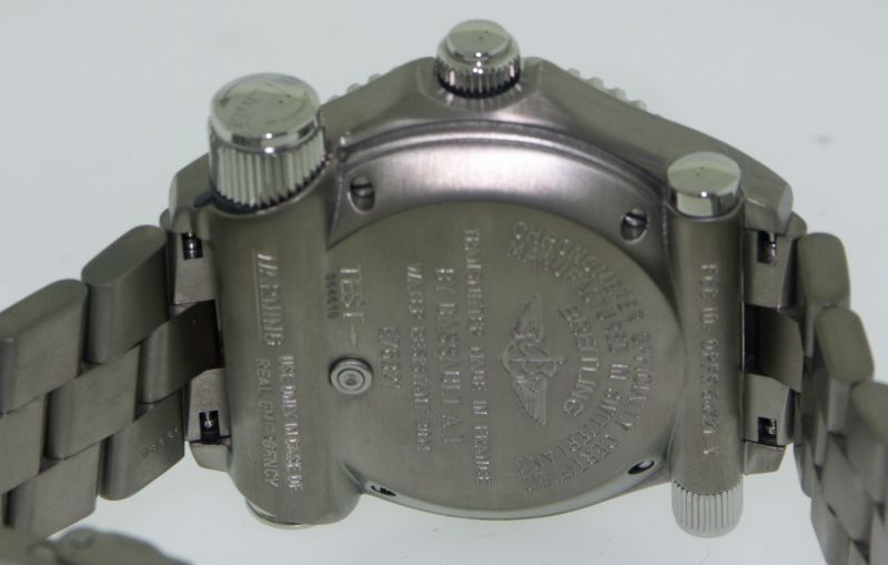 Breitling Professional Emergency quartz ana-digi chronograph alarm model E7632110 in all titanium with black dial, with all the accessories and papers.