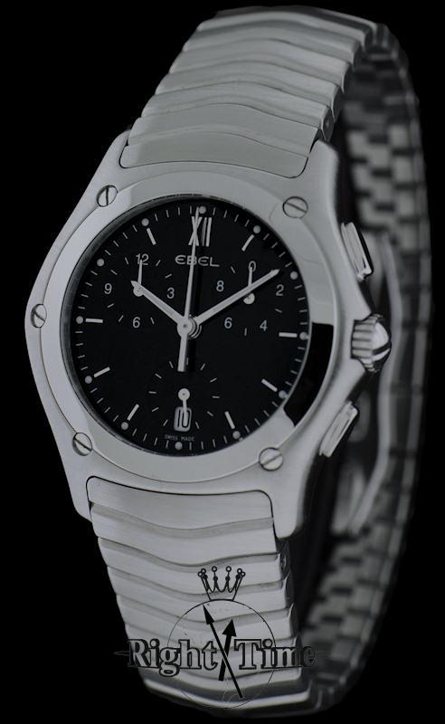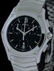 Gentleman`s dress-sport "Classic Wave" quartz chronograph by Ebel, all stainless steel chunky links bracelet, domed sapphire crystal, black dial with applied markers