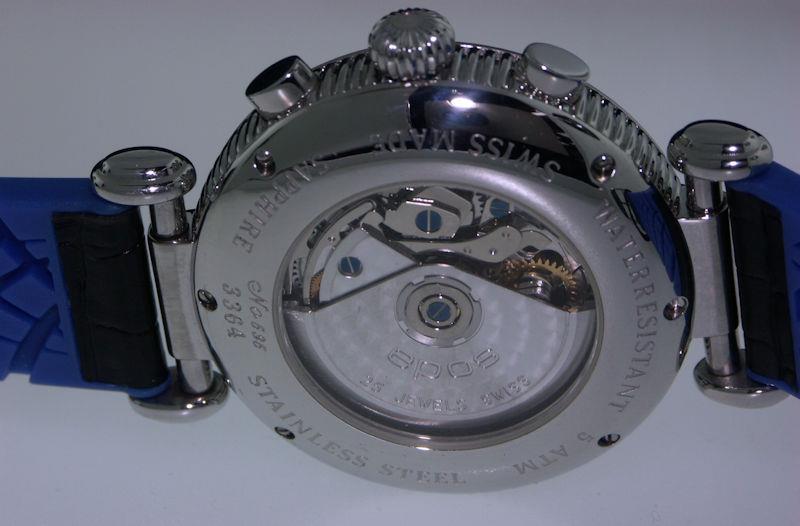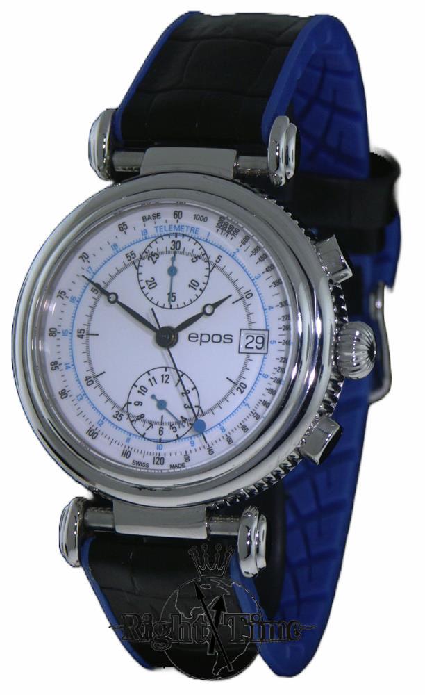 Epos Telemeter Duograph automatic chronograph powered by Valjoux 7750 35 jewels movement, stainless steel polished case with swiveled lugs