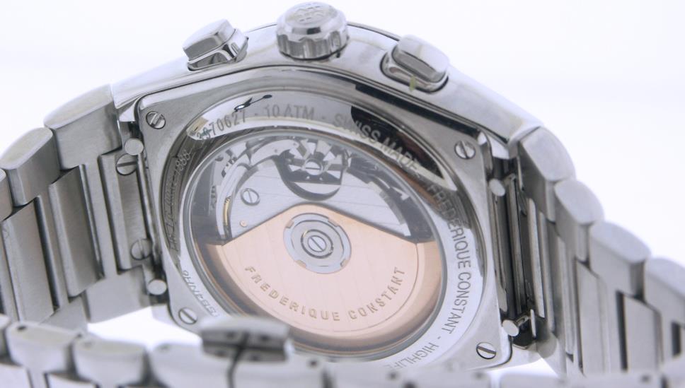 Swiss made Mechanical Automatic (Powered by wrist motion). Frederique Constant Cal. FC-391 made by Manufacture la Joux-Perret LJP L110, 60 hours power reserve, column wheel.
