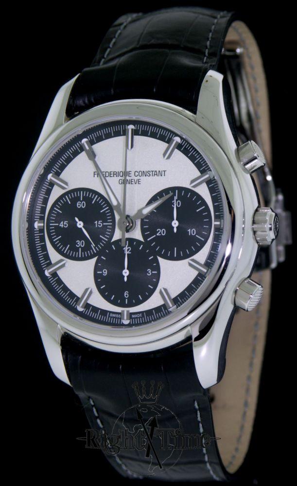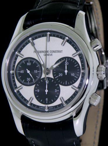 Frederique Constant Vintage Rally Collection. Peking to Paris automatic chronograph watch. Model FC-396sb6B6. Limited Edition of 1888 pieces. Swiss automatic Valjoux 7750 movement. Stainless steel case. Silver color dial with black sub-dials and steel applied indexes. Black leather band.