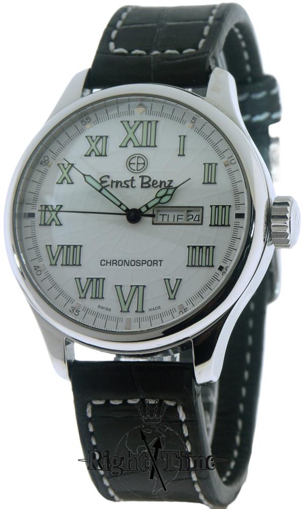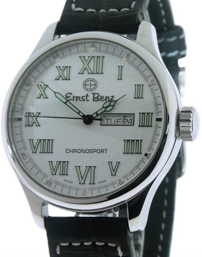 Ernst Benz `Chronosport` GC10252 with white guilloche pattern dial with oversized Roman numerals filled with superluminova, powered by ETA2836-2 automatic movement, inside 47mm polished stainless steel case