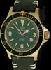 Glycine GL0268 Combat SUB`11 automatic 200 meters water resistant watch powered by Sellita SW200 automatic movement. Bronze case, green insert of one-way rotating bezel, sapphire crystal. Green dial, large white luminous hands and markers. Green leather strap
