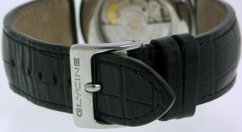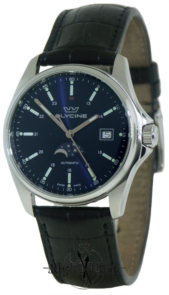 Glycine Combat classic monophase, powered by Swiss made Sellita SW280-1 automatic movement, blue dial with luminous markers, polished stainless steel case on leather strap