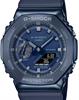 Casio G-Shock GM-2100N-2ACR. Dubbed the "CasiOak" due to the octagonal bezels resemblance to the famous "Royal Oak" from Audemars Piguet. Polished navy blue PVD stainless steel cover over carbon case and textured silicone blue strap. A mere 11.5 mm thick, which is the thinnest among G-SHOCK combination models. Dark gray/black dial. Features include stopwatch, count-down timer, world time, and a built-in LED. Water resistant to 200 meters.