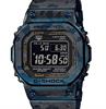 Casio G-Shock model GMW-B5000TCF-2. All titanium case and bracelet with blue camouflage laser print. Solar Powered, Bluetooth smartphone link compatible, and multi-band connected. 200 Meter Water Resistant. Black digital dial.
