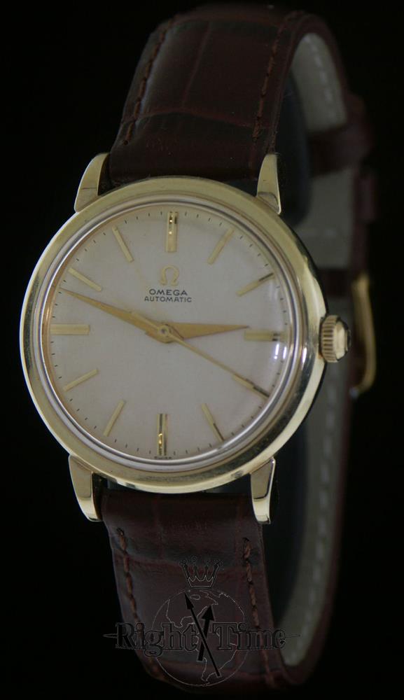 Classic gentleman`s Swiss made Omega automatic with most popular and proven 17 jeweled Omega Caliber 500 inside 14kt gold filled case.
