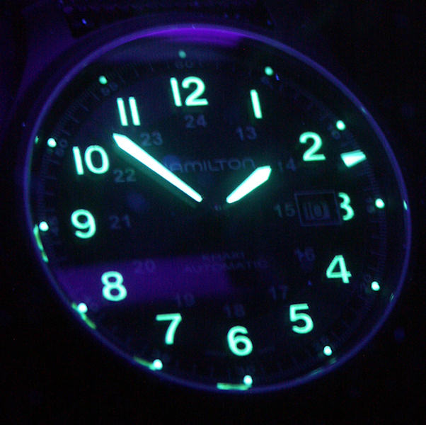 White varnished. Super-LumiNova radiation-free luminous filled.
