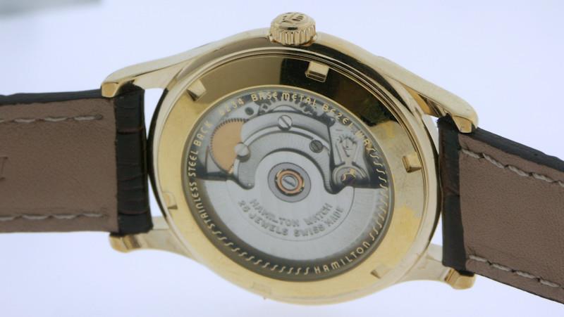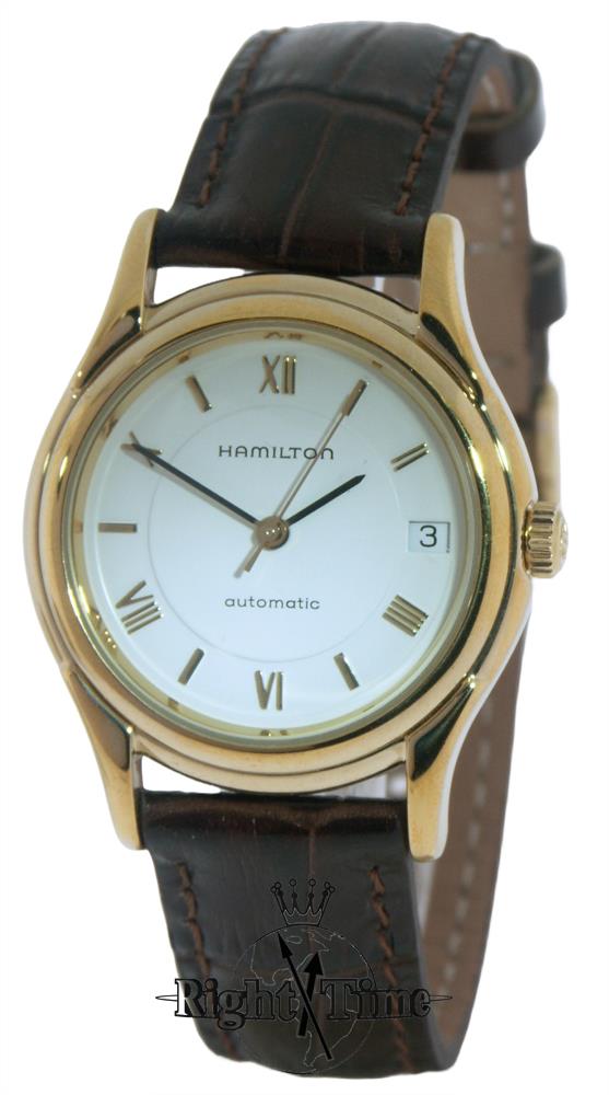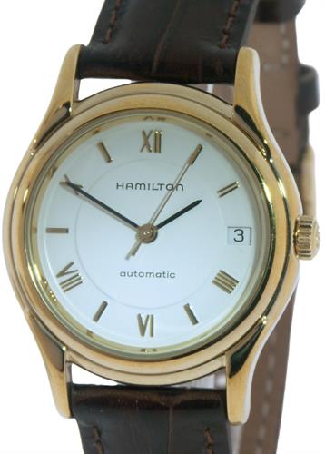 Hamilton Linwood automatic model in gold electroplated case with white Roman dial, powered by ETA 2824 movement