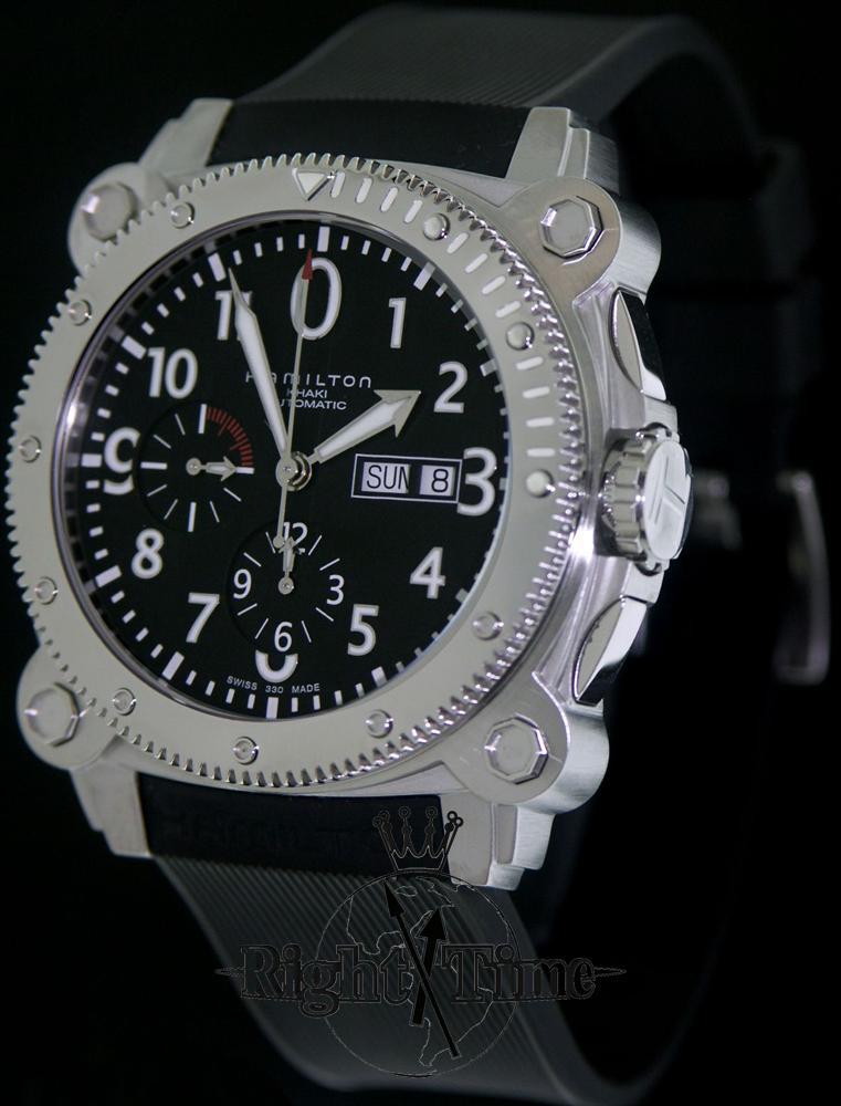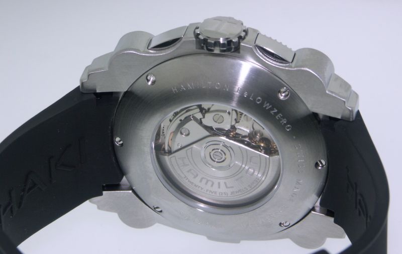 Hamilton "Khaki Below Zero" Automatic chronograph in 50mm stainless steel case and rubber strap, powered by Valjoux 7750 movement