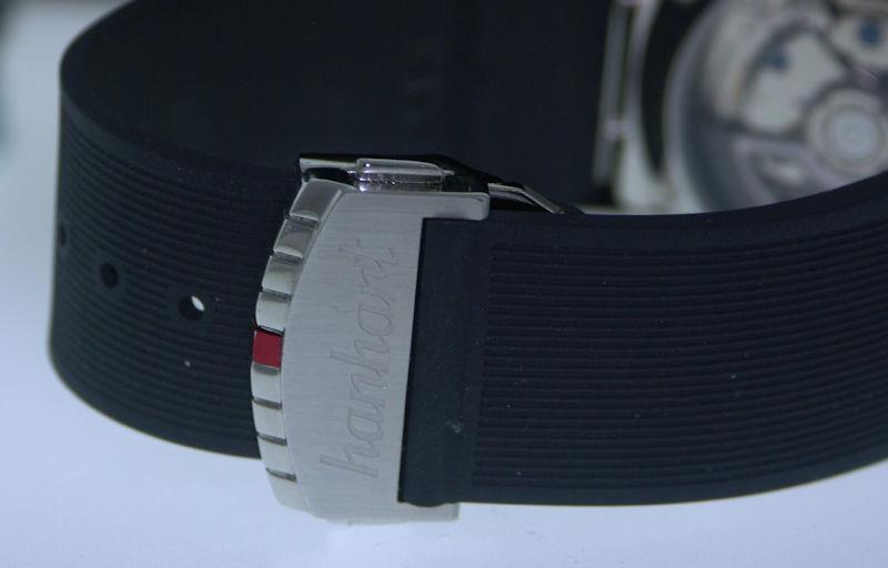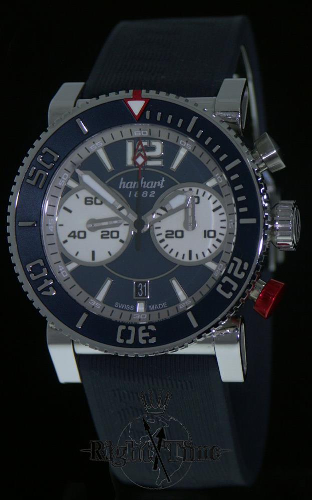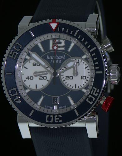 Hanhart(German brand), now a Swiss made automatic chronograph model 742.270 "Primus Diver" steel case with swivel style lugs, powered by Swiss made Sellita SW500 movement, on blue rubber strap, luminous hands, markers and chrono sub-dials