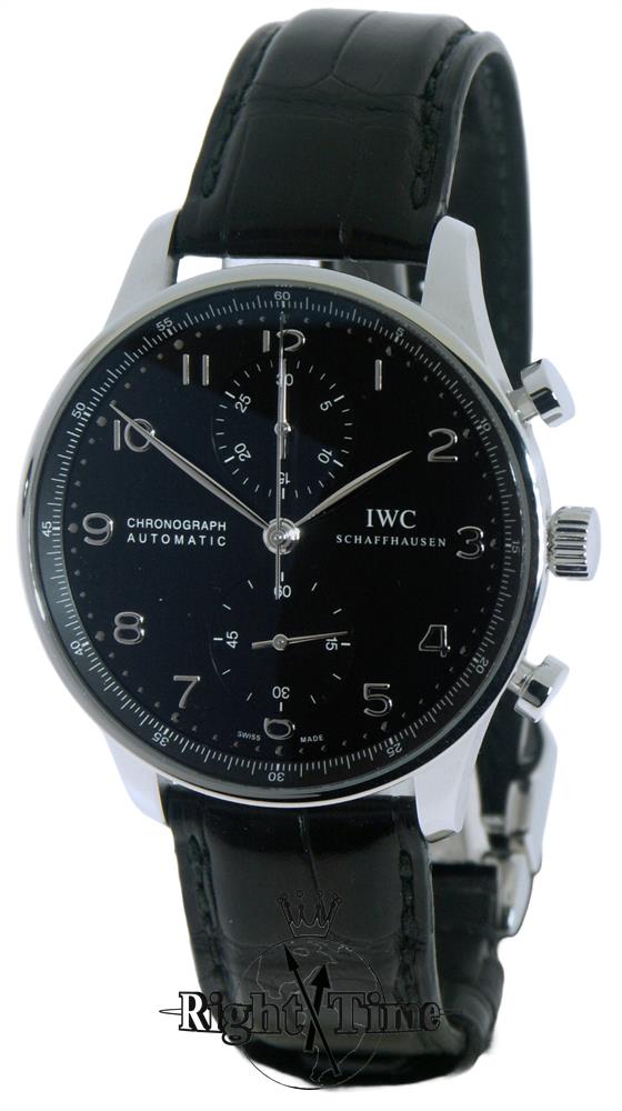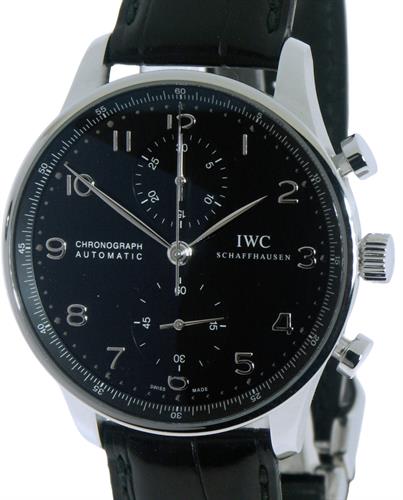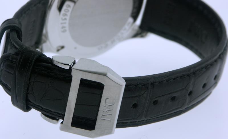 IWC Schaffhausen "Portugieser (Portuguese)", solid stainless steel 41mm case, automatic chronograph with Swiss made 31 jewel movement, black alligator leather strap with factory deployant buckle, circa 2012