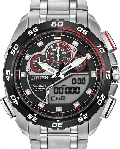 Citizen Promaster Super Sport racing chronograph model JW0111-55E. Stainless steel case and band.
