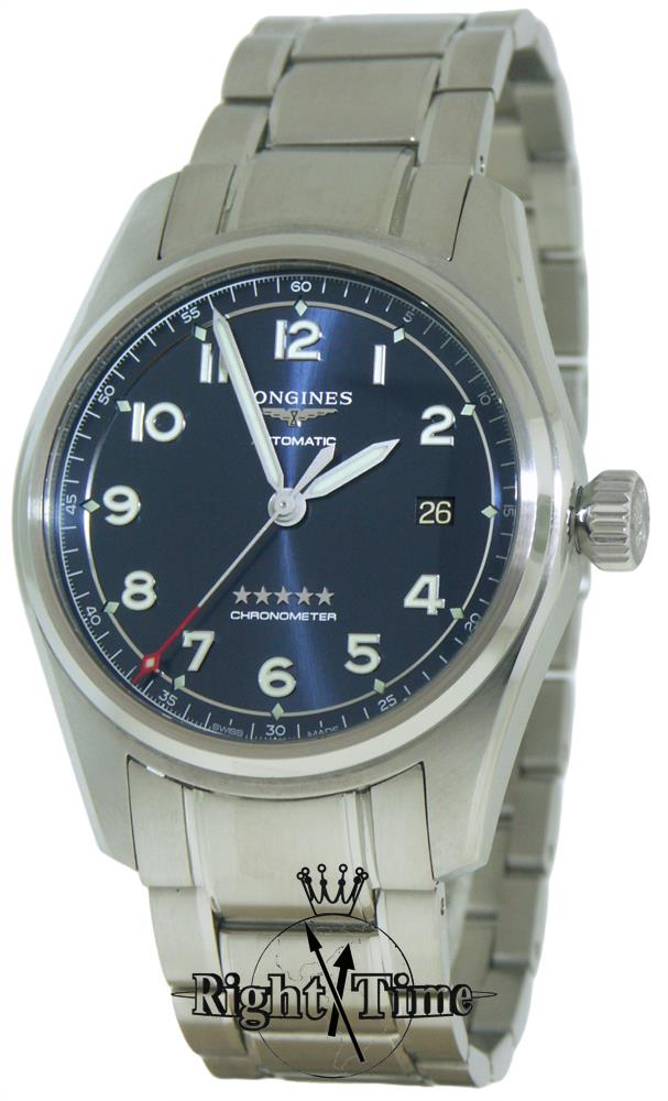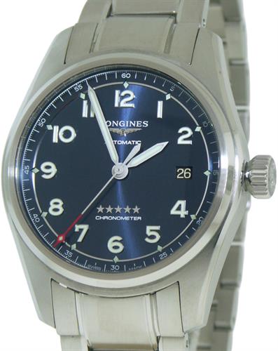 Longines aviation `Spirit` stainless steel model L3.810.4.93.6 automatic certified chronometer L888.4 movement, all stainless steel case and bracelet, blue dial