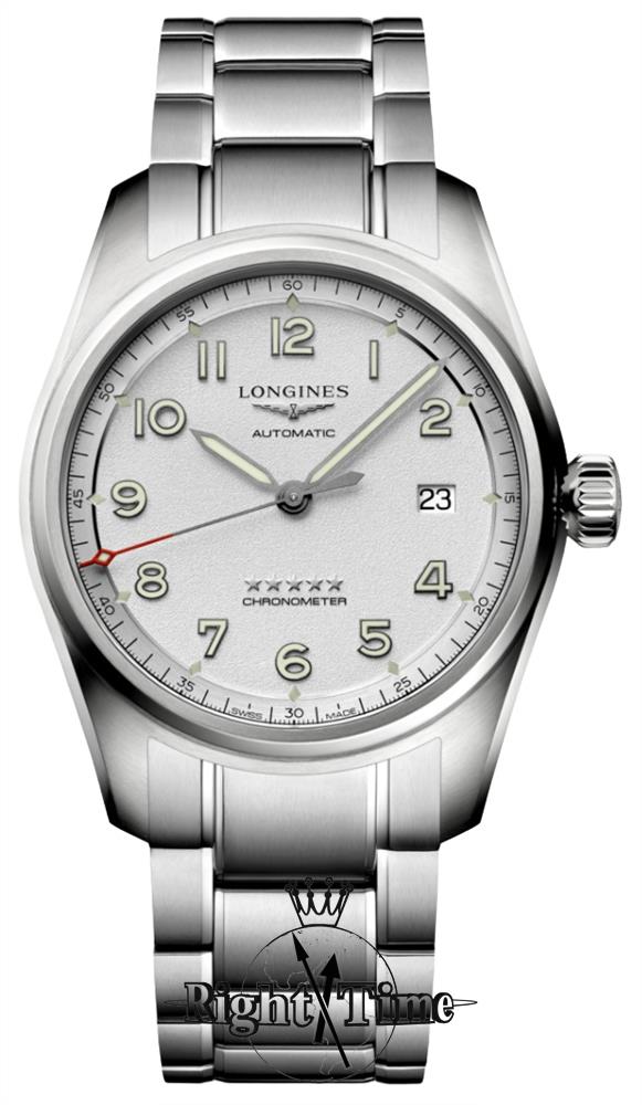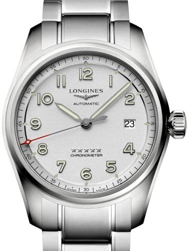 Longines aviation `Spirit` stainless steel model L3.811.4.73.6 automatic certified chronometer L888.4 movement, all stainless steel 42mm case and bracelet, silver speckle dial