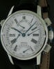 Quad retrograde - Retrograde date pointer hand, retrograde day pointer hand, retrograde second hand and retrograde 24 hour GMT hand.