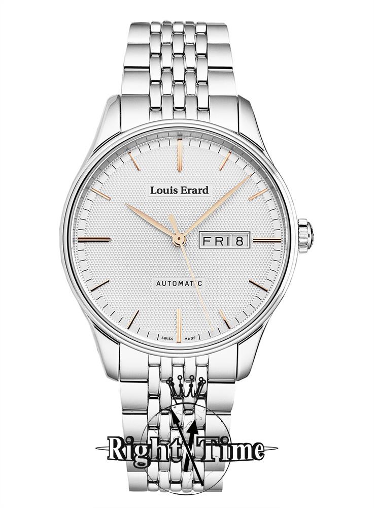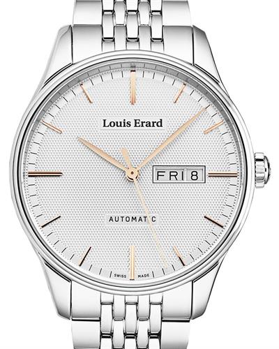 Louis Erard Heritage model 72288AA31.BMA88. Swiss made ETA automatic movement. High polished solid stainless steel case and bracelet. Silver dial with rose gold tone hands and markers. Sapphire crystal. Water resistant to 5atm.