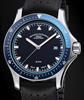 Muhle Glashutte ProMare Go watch powered by automatic movement with Glashutte made plates and patented woodpecker regulator. Classic 42mm stainless steel case, scratchproof sapphire crystal, screw down crown, see-through caseback, blue dial with date, blue rotating bezel, Super-luminova hands and markers. Water resistant to 300 meters. Comes on black waterproof leather/rubber strap