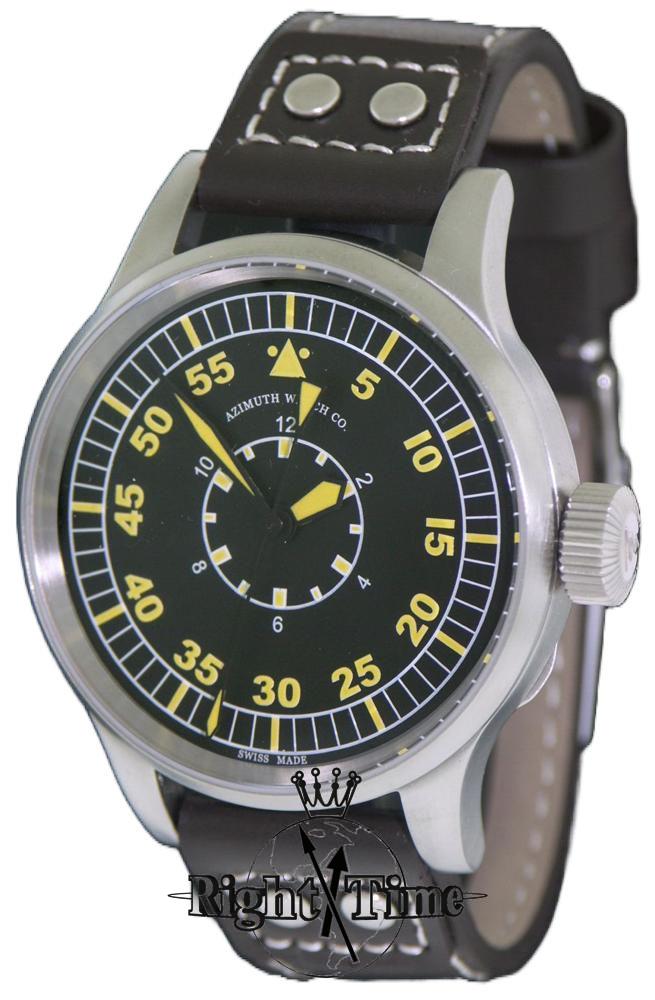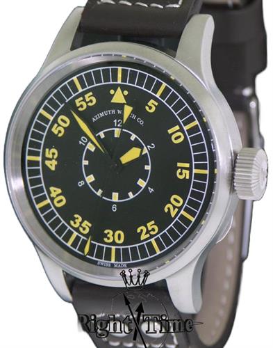 Manual wind Azimuth Militare Vintage B-UHR 48mm Inner Hour watch powered by modified Unitas 6497/8 movement with extra sweep second wheel, pinion and large second hand. Satin finished stainless steel case with hinged solid steel back cover revealing the beautifully finished unique movement.